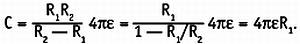 Если неограниченно увеличивать внешний радиус нашего конденсатора R2, то он превратится в изолированный шар с емкостью: