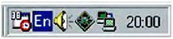 Надпись на транспаранте сменилась на: «Вход в сеть», после чего он исчез, а в правом нижнем углу экрана появился значок — два соединенных дисплейчика (рис. 7), которые теперь забавно «перемигивались»: то один, то другой нарисованный экранчик зажигался зеленым светом.