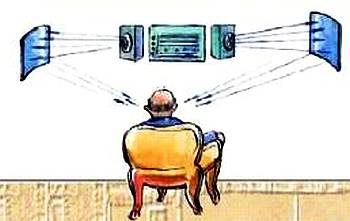 Иван Хабулин предлагает звуковые колонки располагать одну возле другой, но так, чтобы излучатели их были направлены в разные стороны. А по углам комнаты, считает Иван, нужно повесить отражатели звука, выполненные из листового материала. Если их при этом раскрасить, стереосистема сможет услаждать не только слух, но и глаз.