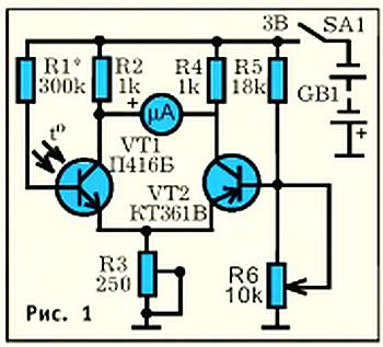 «Возмутителем спокойствия» измерительного мостика служит инфракрасный (ИК) нагрев транзистора VT1. В этом случае транзистор VT1 действует как болометр — прибор, реагирующий на собственный нагрев.