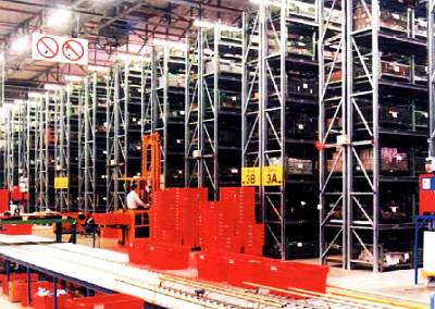 И он стал рассказывать и показывать, как работает современное хранилище товаров. Во-первых, современное складское помещение часто напоминает ангар — огромное по своим размерам и с высоченным потолком. Только вместо самолетов здесь до самой крыши вздымаются «небоскребы» многоэтажных металлических стеллажей. Каждая ячейка каждого стеллажа пронумерована и зашифрована специальным штрих-кодом, наклейка которого четко виднеется в строго определенном месте.
