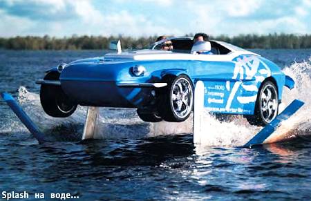 Разработали этот концепткар-амфибию Splash(что в переводе с английского означает «всплеск» или даже «выставление напоказ») швейцарские инженеры. Публично они выставляли его на Женевском автосалоне, а на московский ограничились лишь присылкой рекламных проспектов и плакатов. И действительно, тот, кому такой автомобиль по карману, может съездить в Швейцарию, чтобы посмотреть, испытать его в натуре, а потом, возможно, и купить.