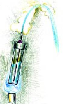 Залейте бутылку горячей водой примерно на одну треть. Заверните крышку, а другой конец гибкой трубочки опустите в воду и поскорее облейте бутылку холодной водой. В ней тотчас образуется вакуум, и через трубочку в бутылку потечет струя воды.