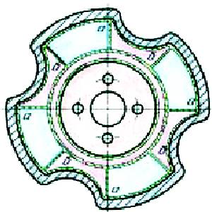 …способное изменять свою форму, предложил Владимир Заботнов из Нижнего Новгорода. Это достигается тем, что колесо разделено на отдельные секции. При помощи золотникового распределяющего устройства секции соединяются либо с компрессором, подающим сжатый воздух, либо с насосом, который воздух из них выкачивает. Благодаря этому колесо становится ребристым, и сцепление его с грунтом возрастает. Зимой автор предлагает надутые секции дополнительно нагревать. Тогда они будут как