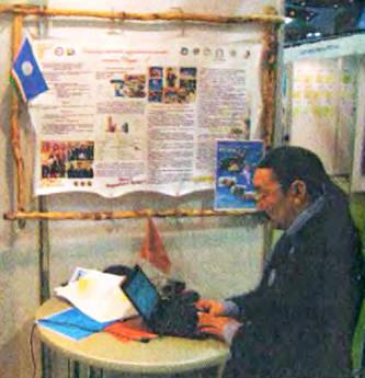 Учитель из Якутии Е. Мухин показывает разработки своих учеников.