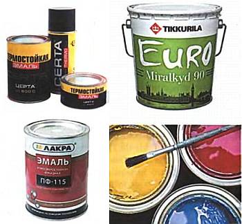Термостойкие краски, как уже говорилось, ныне применяют для окрашивания металлических и кирпичных каминов, печей и прочих отопительных устройств. Такое покрытие защитит металл от коррозии, а кирпич — от растрескивания. В покраске нуждаются как декоративные (наружная кирпичная кладка, плитка), так и рабочие поверхности, испытывающие сильную тепловую нагрузку — трубы, дымоходы, каминные решетки…