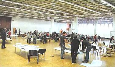В огромном зале Центрального дома художника было где разгуляться! И хотя часть этого зала была занята столами, за которыми участники соревнований вели монтаж