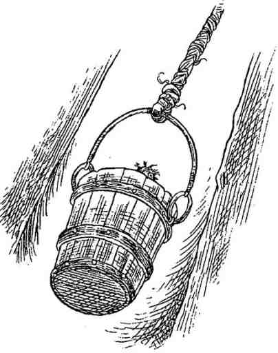 Все выше и выше поднимали его — и вот он уже выбрался из сиропа, Прутик сделал вдох и закашлялся, к удивлению своему набрав полные легкие свежего воздуха. Протерев глаза, мальчик наконец увидел то, что он принял за длинное тело змеи с огромной головой. Это было ведро на веревке!