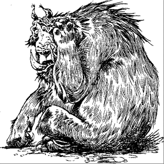 Это огромное, заросшее шерстью создание сидело, скрючившись, и потирало щеку когтистой лапой.