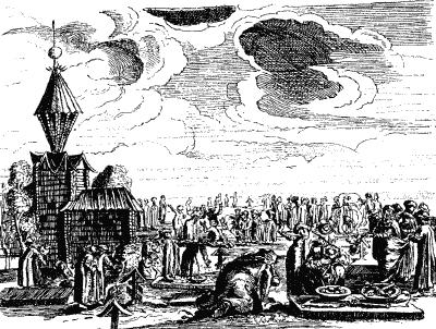 Гравюра из Адама Олеария. Часовня и надгробия совершенно не похожи на православные; это, скорее, языческое кладбище
