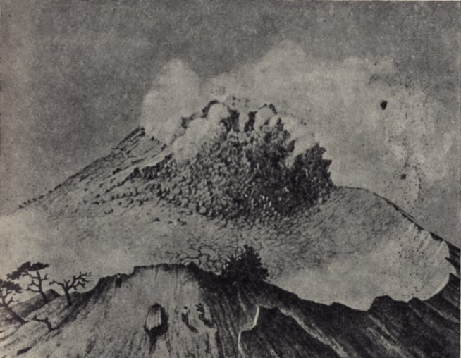 Вулкан Гунунг-Мерали (остров Ява). Литография XIX века.