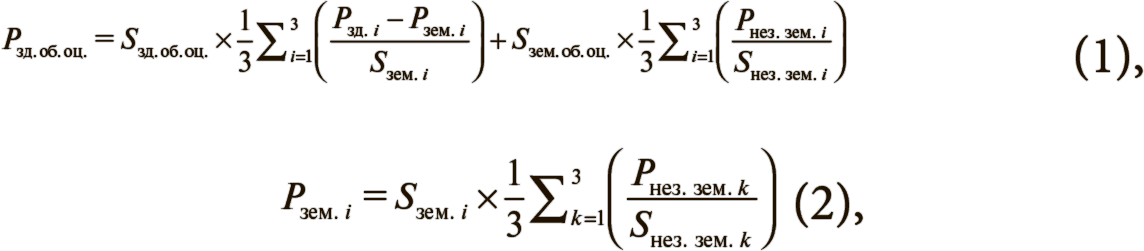 Sзем. об. оц. – площадь здания – объекта оценки, сот.;
