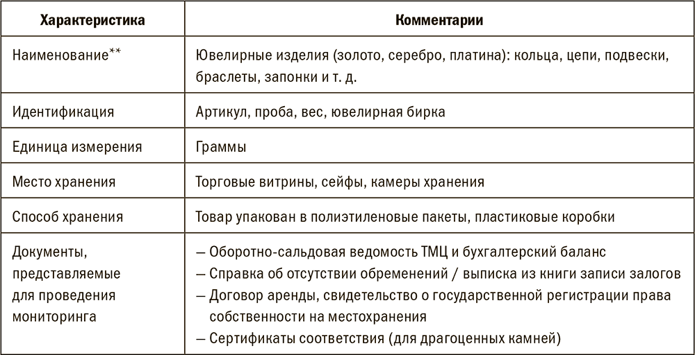 Табл. 3.6. Ювелирные изделия в залог [120]