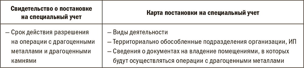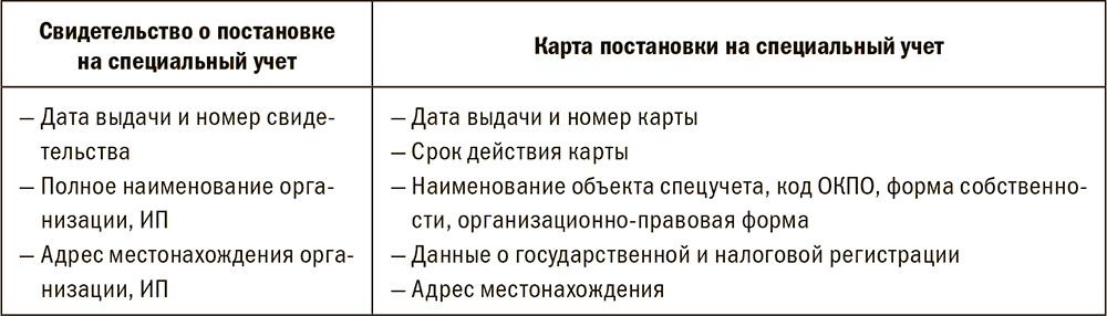 Залоговая служба может запросить у залогодателя ювелирных изделий подтверждение нахождения на специальном учете в виде действующего [121] свидетельства о постановке на специальный учет и заверенной госинспекцией карты постановки на специальный учет. Структура сведений в данных документах приведена в табл. 3.7.