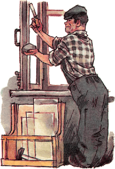 Однажды стекольщик замазывал на зиму рамы, а Костя и Шурик стояли рядом и смотрели. Когда стекольщик ушёл, они отковыряли