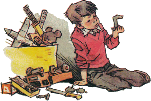 — Тебе не нужна, а мне нужна, — проворчал Шурик и полез под стул искать замазку. — Где же она? — сердился он. — Вот ищи теперь.