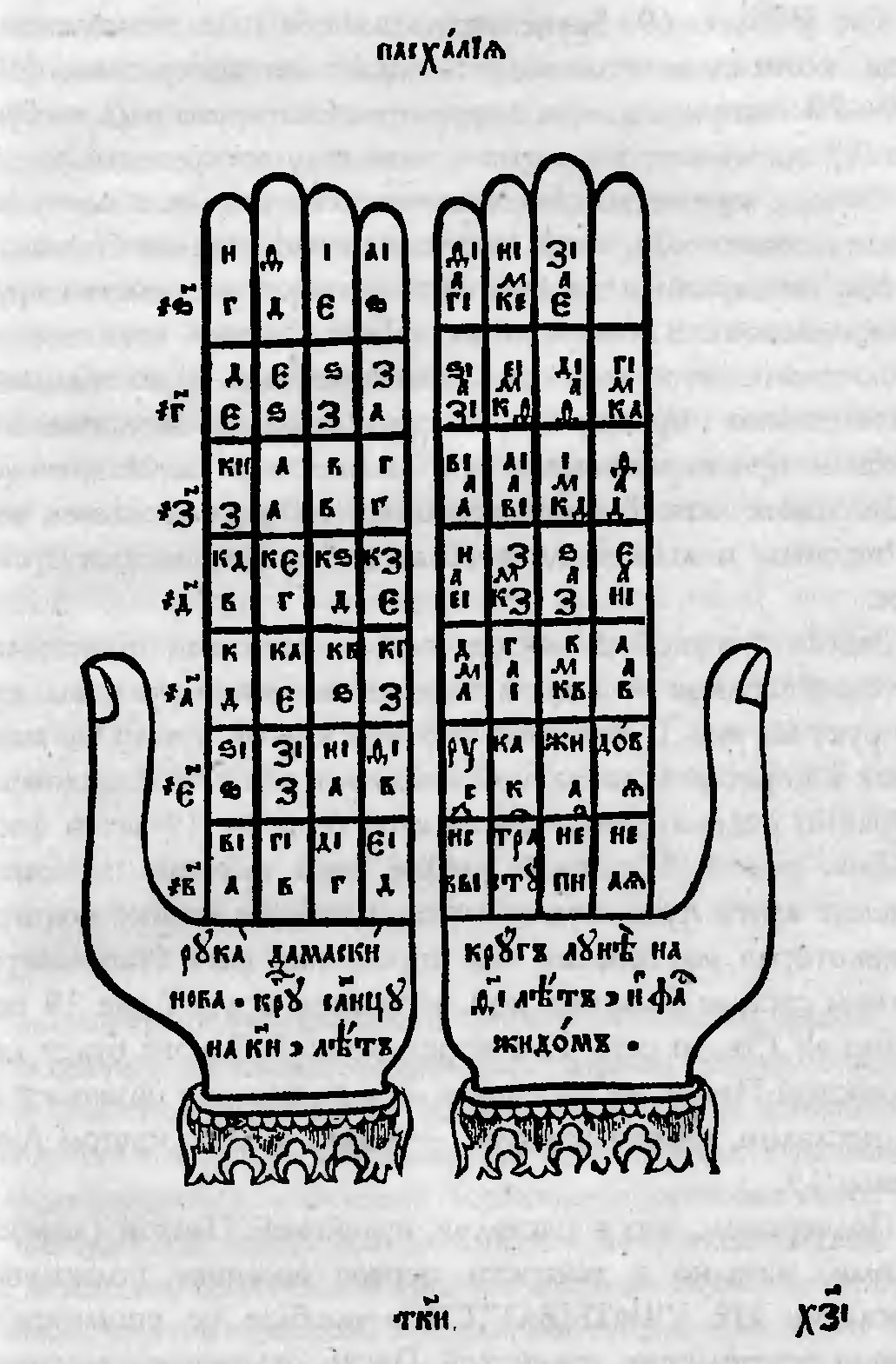 Как легко убедиться, глядя на рисунок, перст и вруцелето полностью задают круг Солнцу. Поэтому, скажем, вместо «Круг Солнцу 11» в старинной летописи могло стоять «Круг Солнцу 6 на мизинце». … Но позднейший переписчик, уже отвыкший от индиктовых дат и, напротив, привыкший к летоисчислению по эре, мог не понять такой записи, и, скажем, опустить слово «мизинец». …