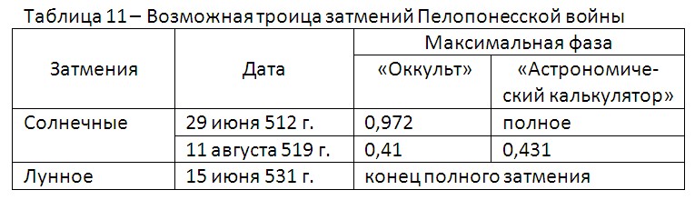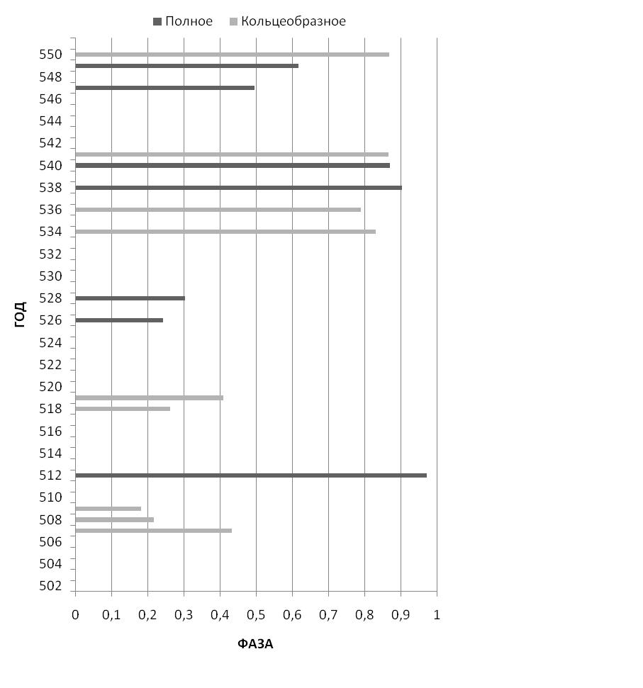 Рисунок 8 – Солнечные затмения в Афинах 502-551 гг.
