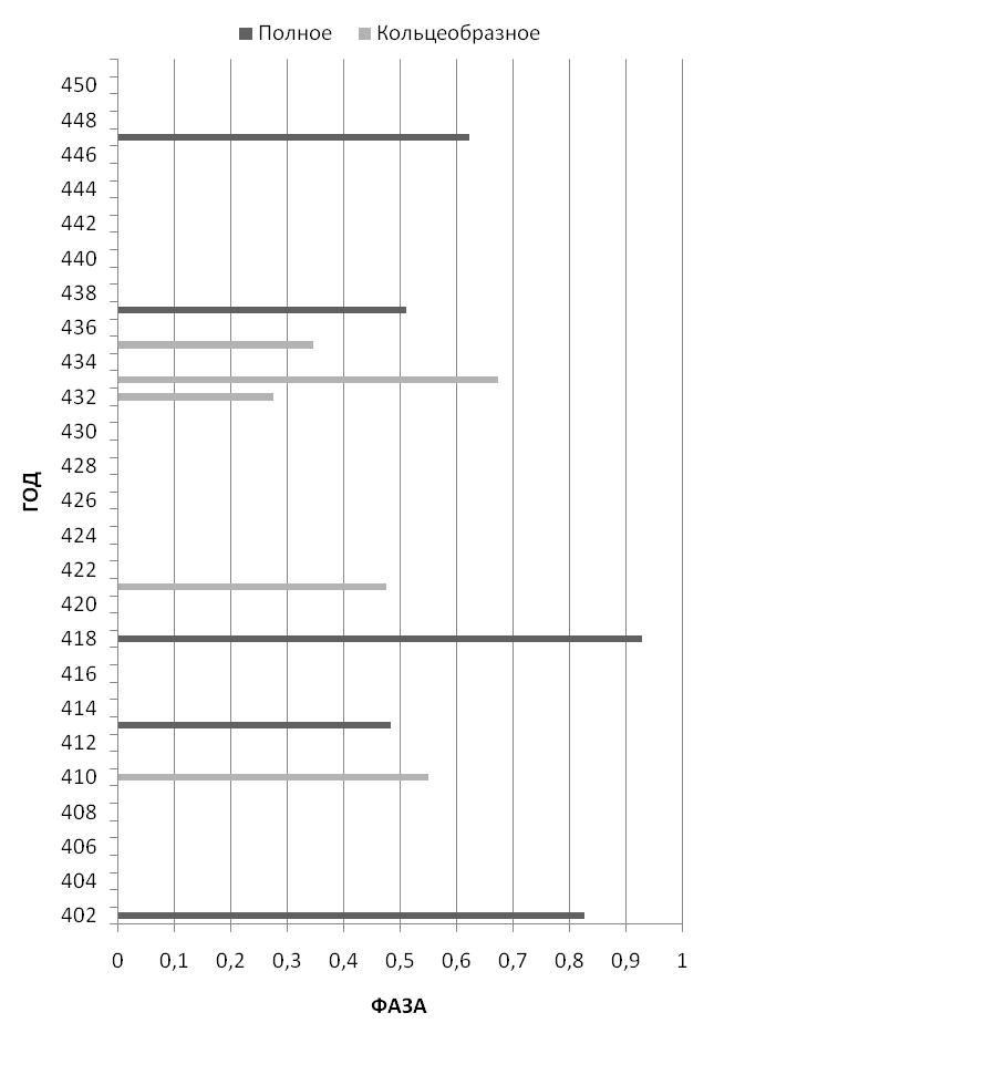 Рисунок 10 – Солнечные затмения в Афинах 402-451 гг.