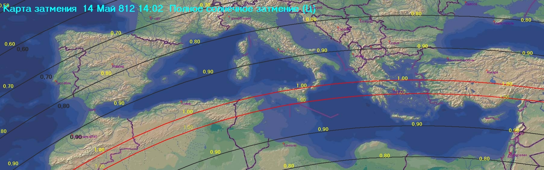 Рисунок 5 – Карта солнечного затмения 14 мая 812 года