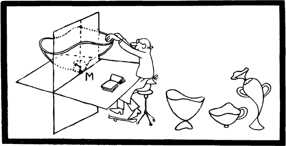 Давайте раздвоимся. Пусть одна наша половинка расплющится и перейдет жить на плоскость, ну хотя бы на лист этой книги. Вторая же часть пусть продолжает сидеть или лежать, держа уцелевшей рукой книгу перед уцелевшим глазом. А теперь аккуратно свернем лист в цилиндр или в конус-кулек и зададим своей расплющенной половинке несколько вопросов.