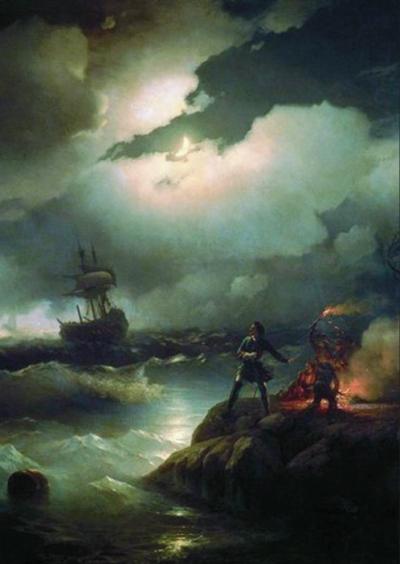 Айвазовский И. К. Петр I при Красной горке, зажигающий костер для сигнала гибнущим судам своим (фрагмент)