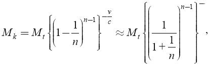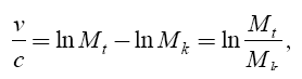 Формула (2) позволяет вычислить окончательную скорость, приобретаемую ракетой в поле тяготения, если известно отношение