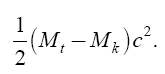 Обозначим, как прежде, массу свободной ракеты до взрывания через М t , после взрывания – через Mt , после взрывания – через Mk ; масса израсходованного горючего выразится тогда через Mt – Mk , скорость вытекания газа – с. Живая сила вытекающих газов, т. е. кинетическая энергия, равна