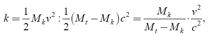 Отношение второй величины к первой и есть коэфициент k полезного действия свободной ракеты: