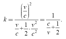 Если v/c невелико, можно формулу (4) упростить, исходя из того, что