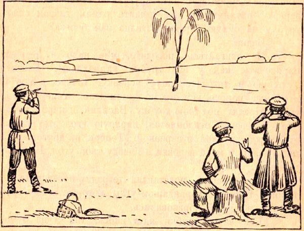 — Сейчас увидишь. Бери в руки одну трубку, а вы, Пантелей Семеныч, берите другую. Станьте так, чтобы веревку натянуть, и оба глядите одним глазом сквозь трубку на сухую березу.