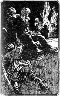 Пять заросших, неопрятных лиц склонились над огнем. Ужинали. Пламя едва освещало их. Незнакомые, нездешние. Один седой, с породистым лицом. У троих — винтовки меж ног. Никотины сидели в стороне, связанные чуть ли не спина к спине, и молча неотрывно смотрели на жующих людей. Так могут смотреть очень голодные люди.