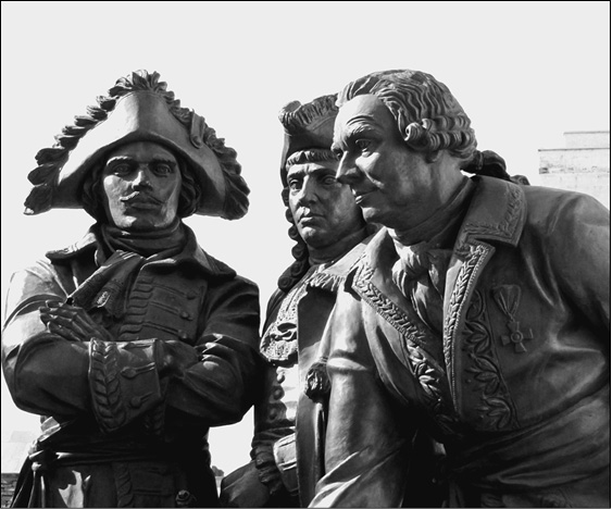 Здесь же, в переулке Крепостном, расположен главный ростовский мемориал, посвященный основателям крепости Св. Димитрия Ростовского. Памятник включает четыре исторических персонажа с реальными прототипами и одного безымянного – сидящего и задумчивого казака, с обвислыми усами и подстриженного «под макитру» (такая прическа практиковалась у донских и запорожских вольных людей – на голову надевалась глиняная посуда с широким горлом и всё, что свисало из шевелюры, обстригалось).