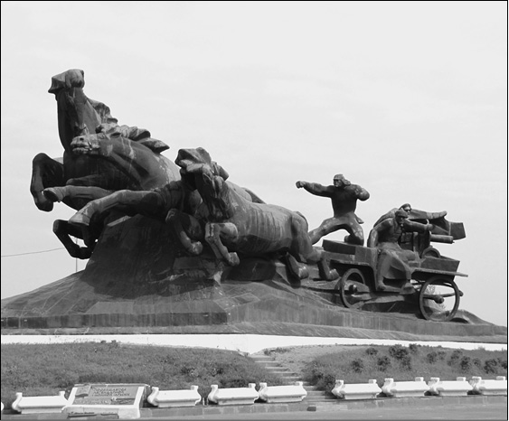 На десять лет раньше в каховских степях Украины был установлен аналогичный памятный знак. С ростовской скульптурной