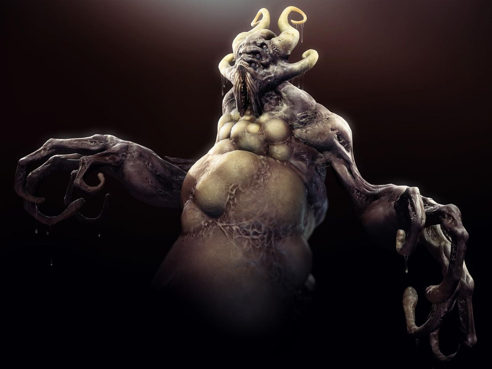 Створки роскошной двери распахнулись, впустив отвратительное существо. Оно вползло в тронный зал, испуская из себя тысячи спор. Они, тут же лопаясь, окружили хозяина зловонным облаком. Это облако служило ему защитой от света. Множество щупалец вылезло из черного тела. Не было видно ни головы, ни ног, ни рук. Странное существо напоминало кляксу из ученической тетради.