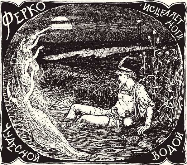 Долго полз Ферко, волочил перебитые ноги. Вот добрался он до берега, опустил ноги в воду. И сразу же срослись кости, и стали ноги резвее прежнего. Ферко поблагодарил судьбу, что привела его на волшебный холм и позволила понять речи воронов. Потом набрал он полную фляжку целебной воды и продолжил путешествие. Весело и легко было у него на душе.
