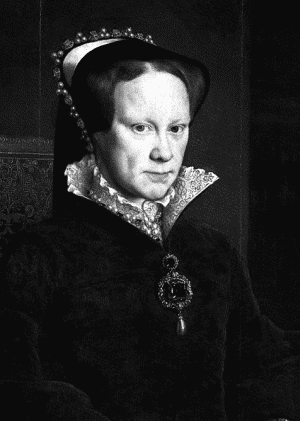 Мария Тюдор (1516–1558) – королева Англии с 1533 г., дочь Генриха VIII Тюдора и Екатерины Арагонской. Восстановила католицизм и жестоко преследовала сторонников Реформации, а посему имела характерные прозвища – Мария Католичка, Мария Кровавая.