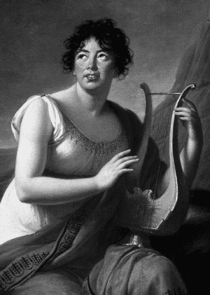 Анна Луиза Жермена де Сталь (урожд. Неккер) (1766–1817) – французская писательница, теоретик литературы, публицист. Являлась влиятельной фигурой раннего французского романтизма. Лорд Байрон, скептически относившийся к «ученым женщинам», делал для нее исключение, заявляя: «Она совершила в умственной области больше, чем все остальные женщины, вместе взятые; ей бы родиться мужчиной».