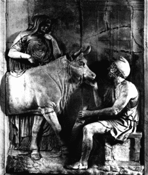 Царица Пасифая демонстрирует другое яркое проявление сексуального расстройства – зоофилию. Пасифая – супруга критского царя Миноса, мать Ариадны и Федры. Афинский филолог Аполлодор пишет, как, влюбившись в красивого быка, «она взяла себе в помощники строителя Дедала… Дедал изготовил деревянную корову на колесах, выдолбил ее изнутри и обшил свое изделие свежесодранной коровьей шкурой. Выставив его на луг, где обычно пасся бык, он дал войти внутрь этой деревянной коровы Пасифае. Появившийся бык сошелся с ней, как с настоящей коровой, и Пасифая родила Астерия, прозванного Минотавром». Позже римский поэт Овидий уточняет моральную сторону происшедшего:
