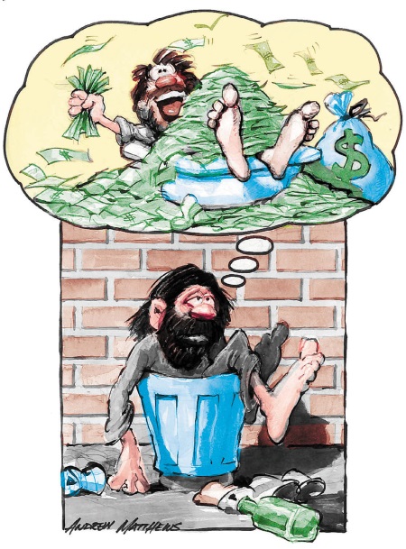 Самой поразительной иллюстрацией взаимосвязи между мышлением и уровнем благосостояния являются победители всяческих лотерей. Люди думают, что этими шальными деньгами они смогут решить все свои проблемы. Тем не менее уже через пару лет после этого неожиданного счастья такие люди оказываются по уши в долгах и живут даже хуже, чем до выигрыша. Почему? Да потому что от любых