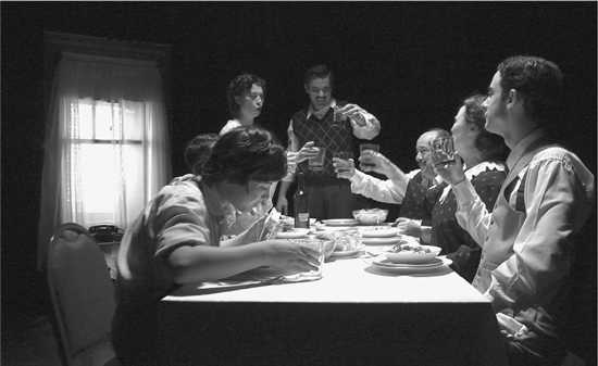 Конечно, отказ от использования зум-объективов создает для «живого кино» иные трудности, так как зачастую в эти более типичные для кинематографа планы на деле попадают другие камеры, и, даже если все камеры хорошо спрятать, их ракурсы окажутся скорее компромиссным вариантом и, возможно, не будут полностью удовлетворять желаниям режиссера. Этот недостаток был не столь очевиден во время работы в Оклахома-Сити, потому что там мы снимали без настоящих декораций, так что не составляло особого труда спрятать камеру за каким-нибудь растением или предметом мебели. Но в Калифорнийском университете декорации были более полноценными, и, хотя мы и в них тоже могли спрятать камеры, я переживал оттого, что не получается снять самые лучшие ракурсы — или по крайней мере те ракурсы, которые хотелось получить, — ведь тогда камера влезала бы в другие важные кадры. Безусловно, это ограничивало нашу свободу, хотя было ясно, что из этой ситуации существует масса возможных выходов, и если я когда-нибудь устрою третью мастерскую, то применю некоторые из возникших тогда идей для решения этой проблемы.