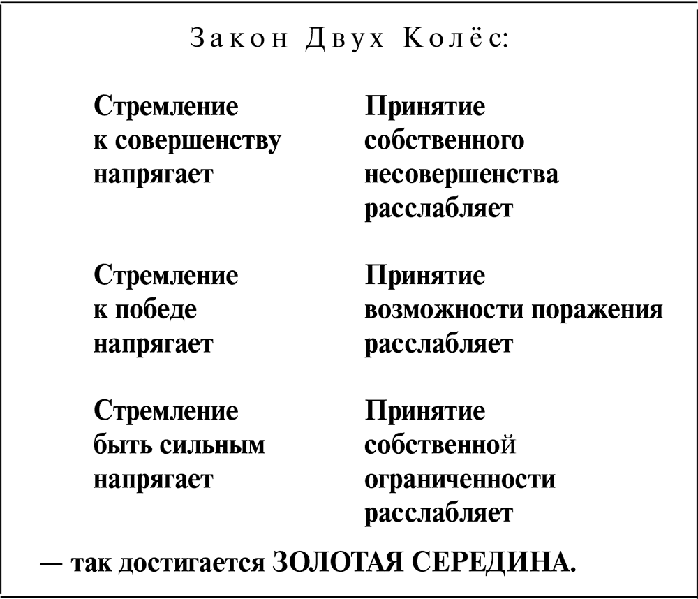 Помните, в предыдущей книге мы говорили о мести, я тогда ещё привёл в пример слова мудреца, который сказал молодому человеку, что если он руководствуется чувством мести, то проиграет в поединке? Месть находится в уме, а сила, исходящая из ума, сила, опирающаяся на разделяющий ум, слаба за счёт оценок и деления мира на добрый и злой.