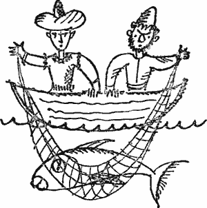 Они оба сели в лодку и отправились в море, а когда доплыли до дворца, Абд ас-Самад забросил свою сеть. Было раннее утро, и солнце еще не взошло. И когда он вытащил сеть, то увидел, что в ней бьется огромная жирная рыба ростом с человека. Абд ас-Самад втащил эту рыбу в лодку и, препоручив себя всесильному повелителю, хотел забросить сеть снова, но вдруг они услышали далекий голос: «О Сайф, то, чего ты ищешь, у тебя в руках!» Тогда царь Сайф сказал: