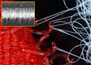 Но теперь «волосатому кремнию» нашли новое неожиданное применение. Ученые сложили два таких слоя и обнаружили, что они достаточно прочно держатся друг за друга подобно обычной липучке велкро. В микроскоп видно, что волоски разных слоев застревают друг между другом. К сожалению, много раз такое соединение не используешь, поскольку хрупкие кремниевые волоски постепенно обламываются. Но три-четыре соединения кремниевая липучка вполне выдерживает. И способна «прилипнуть» к другим основаниям.