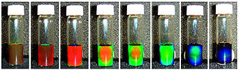Исследователи из Калифорнийского университета в Риверсайде придумали метод, позволяющий легко контролировать цвет суспензии оксида железа (Fe3O4) в воде, просто изменяя параметры внешнего магнитного поля. Эта разработка может использоваться в создании новых дисплеев, электронной «бумаги» и чернил, способных изменять цвет под действием магнитного поля.
