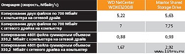 На фоне конкурентов NetCenter WDXE3200JB выделяется прежде всего своей «домашностью». Пассивное охлаждение и, как следствие, практически бесшумная работа делают его привлекательным выбором именно для домашнего использования. Выдающейся производительностью устройство похвастаться не может, как, впрочем, и другие модели, использующие стомегабитный интерфейс. Требовательным к скорости пользователям остается ждать прихода гигабитных накопителей, которые, возможно, смогут раскрыть потенциал установленных в их чреве винчестеров.