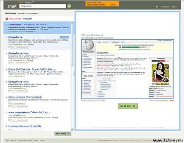 Разработчики Snap использовали модный нынче AJAX для вывода в результатах поиска скриншотов найденных веб-страниц. Спору нет, беглое ознакомление с внешним видом и основными заголовками сайта нередко позволяет сразу сделать вывод о том, насколько он соответствует сделанному запросу, и, по всей видимости, наличие превью может сократить время, затрачиваемое на поиск. Но только если качество поиска будет оставаться на должном уровне. В случае со Snap этого пока не наблюдается. Релевантность и количество выдаваемых ссылок нельзя назвать удовлетворительными даже для англоязычных запросов. Компенсировать убогость движка создатели попытались, введя в поиск социальный элемент, который выражается в том, что пользователи имеют возможность влиять на рейтинг выдаваемых результатов. Для голосования необходимо под скриншотом кликнуть на «Perfect» или «Junk». Как бы то ни было, идея с предварительным просмотром результатов в виде изображений не только при поиске картинок, но и текста вызвала определённый интерес, и в Сети уже появилось несколько сайтов-клонов. Так что вполне возможно, что со временем скриншоты сайтов станут привычным атрибутом поисковиков.