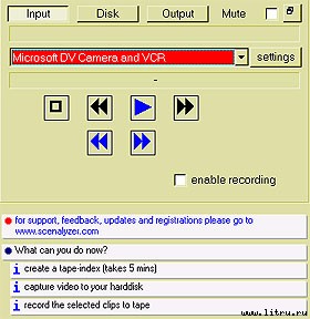 Как видите, ScenalyzerLive сразу же обнаружил ваше устройство (в окне Input появилась надпись Microsoft DV Camera and VCR) и теперь предлагает произвести захват. Выбираем место, в котором мы будем хранить на жестком диске исходные материалы, и жмем кнопку Capture — процесс пошел (рис. 3).