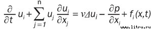 где u(x,t)=ui(x,t)— неизвестный вектор скорости, x — n-мерный вектор координат, t — время, а n — коэффициент вязкости. Второе уравнение говорит, что жидкость несжимаема. На математическом языке это выглядит так: