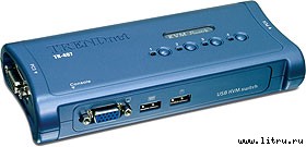 Устройство позволяет управлять работой четырех ПК с помощью одного набора из клавиатуры, монитора и мыши. Переключение выполняется простым нажатием на клавишу. В комплект входят KVM-кабели для четырех ПК. Устройство питается от порта USB и не требует внешнего адаптера. Имеются функции автосканирования подключенных компьютеров, звукового подтверждения переключения и подключения без перезагрузки системы. Цена не указывается.